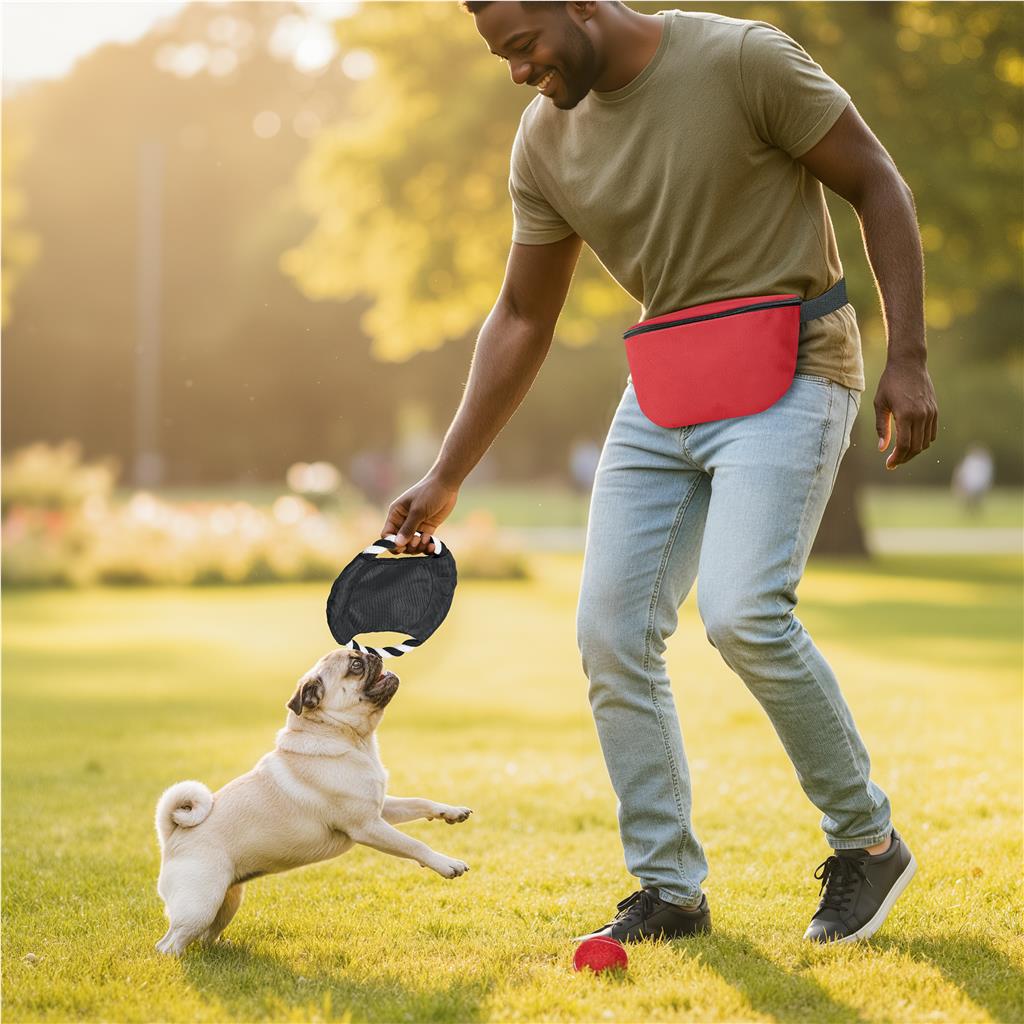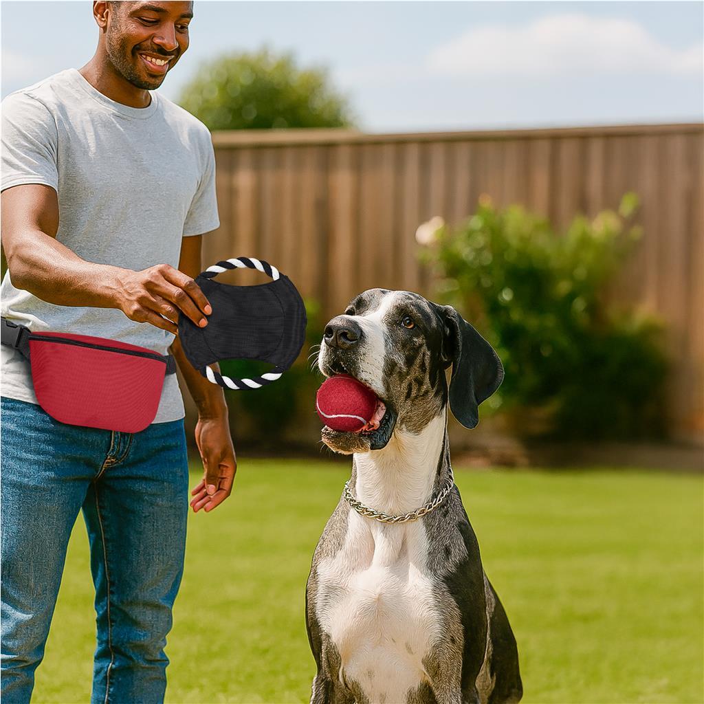 Stay hands-free and fully equipped for playtime with this all-in-one pet adventure set. The crossbody bag comes pre-packed with a matching colour pet-safe ball and a durable black pet frisbee, making it the functional companion for park strolls, beach days, or spontaneous games with your pet.