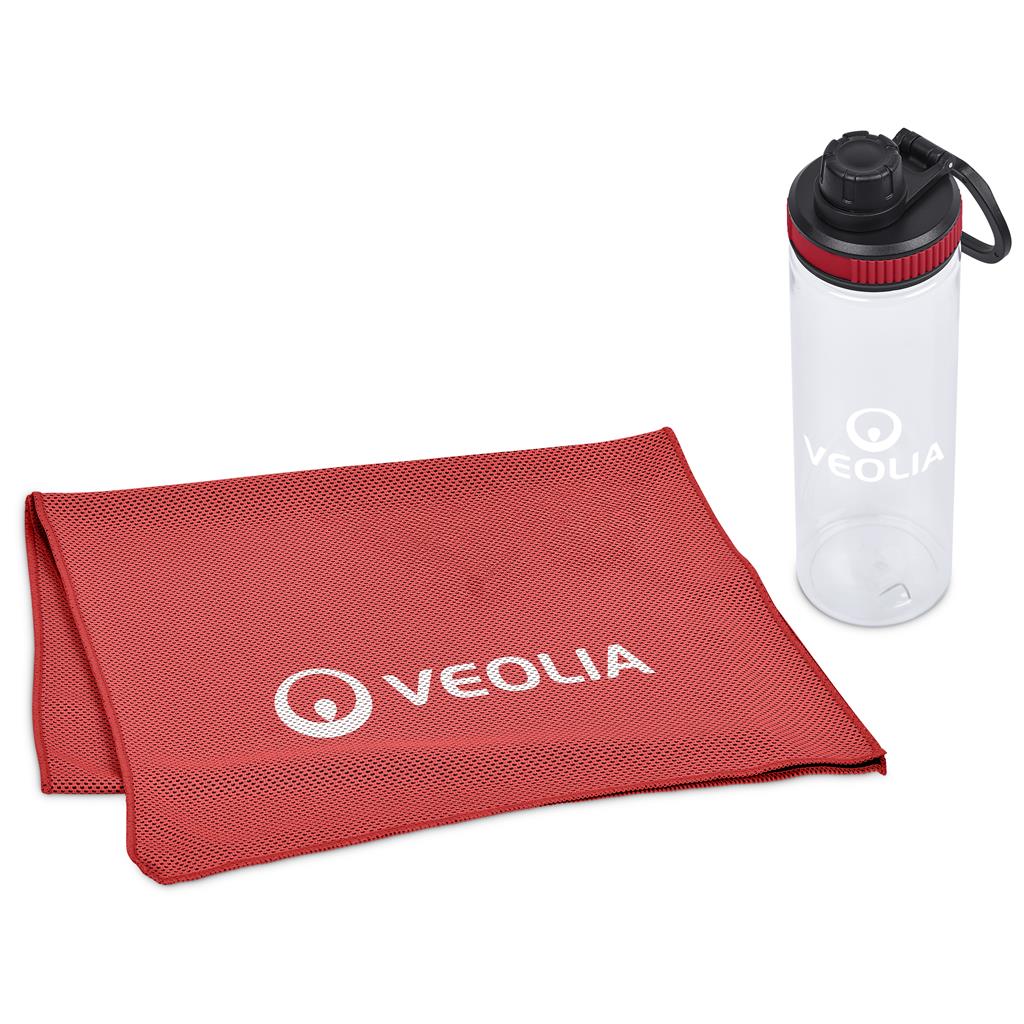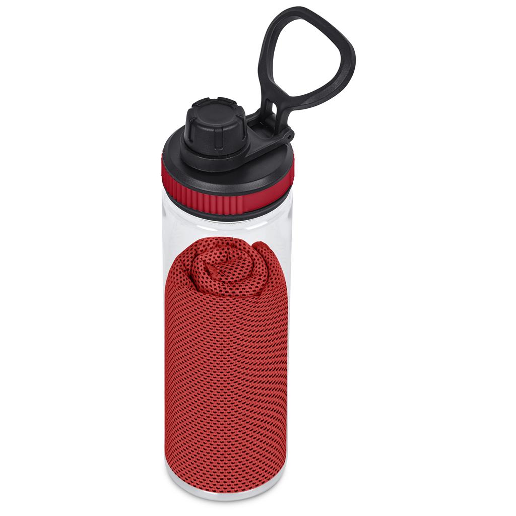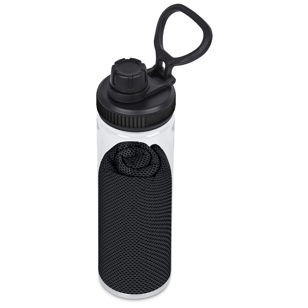 Stay cool and refreshed on the go. This practical 2-in-1 set includes a durable reusable water bottle with a microfibre cooling towel inside. Simply soak, wring, and snap the towel for instant relief. With branding available on both the bottle and towel, it’s an ideal promotional gift for gyms, wellness campaigns and sports events.