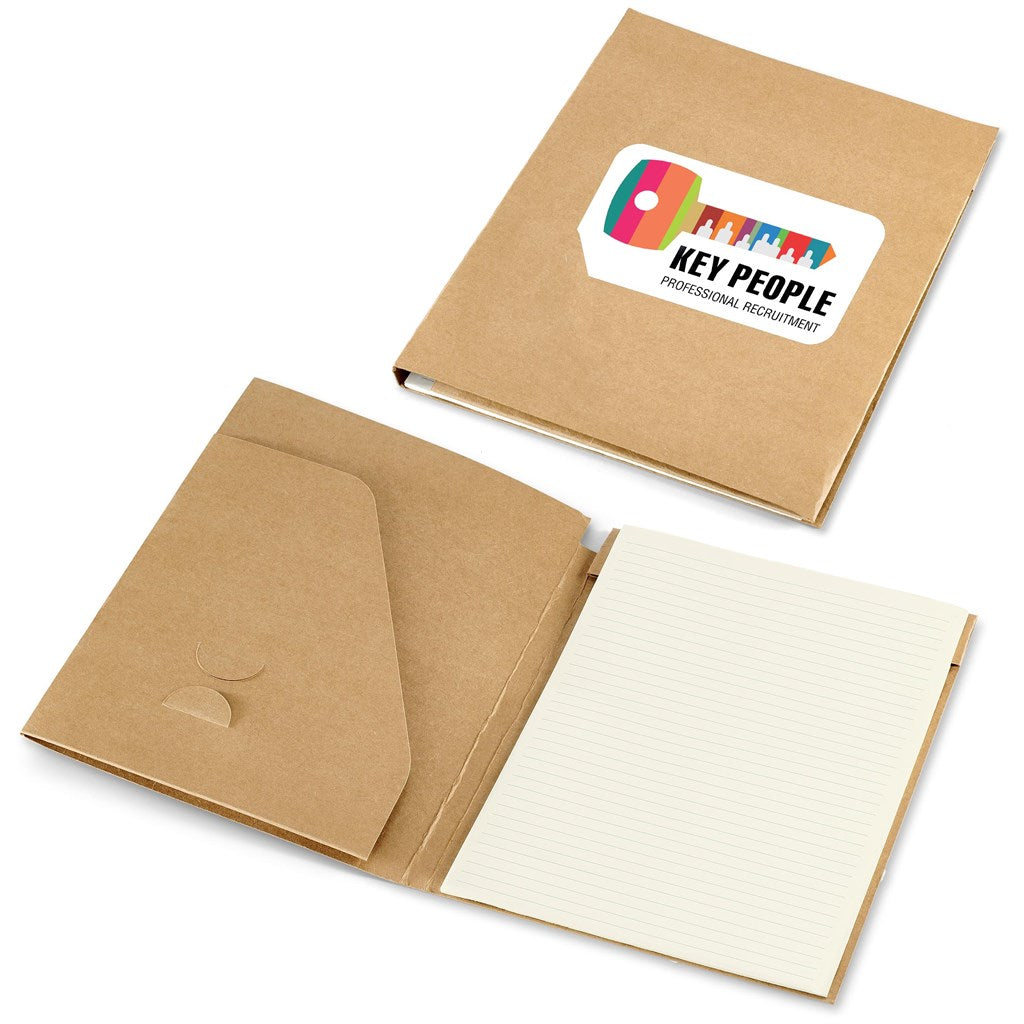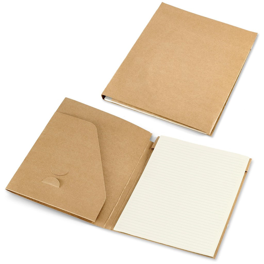 This simple folder is made from natural kraft board and includes a lined paper pad.