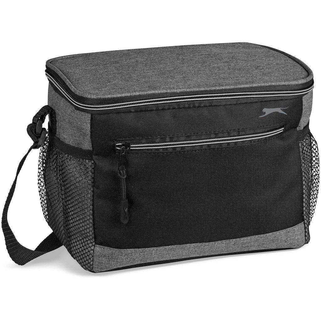 This cooler bag is a member of the Slazenger Wembley collection, which features a sports bag, a backpack, a drawstring bag, and a gym towel. The two-tone zips add a unique feature to these items, giving them an energetic and sporty look. The signature Slazenger reflective logo is on the front panel.