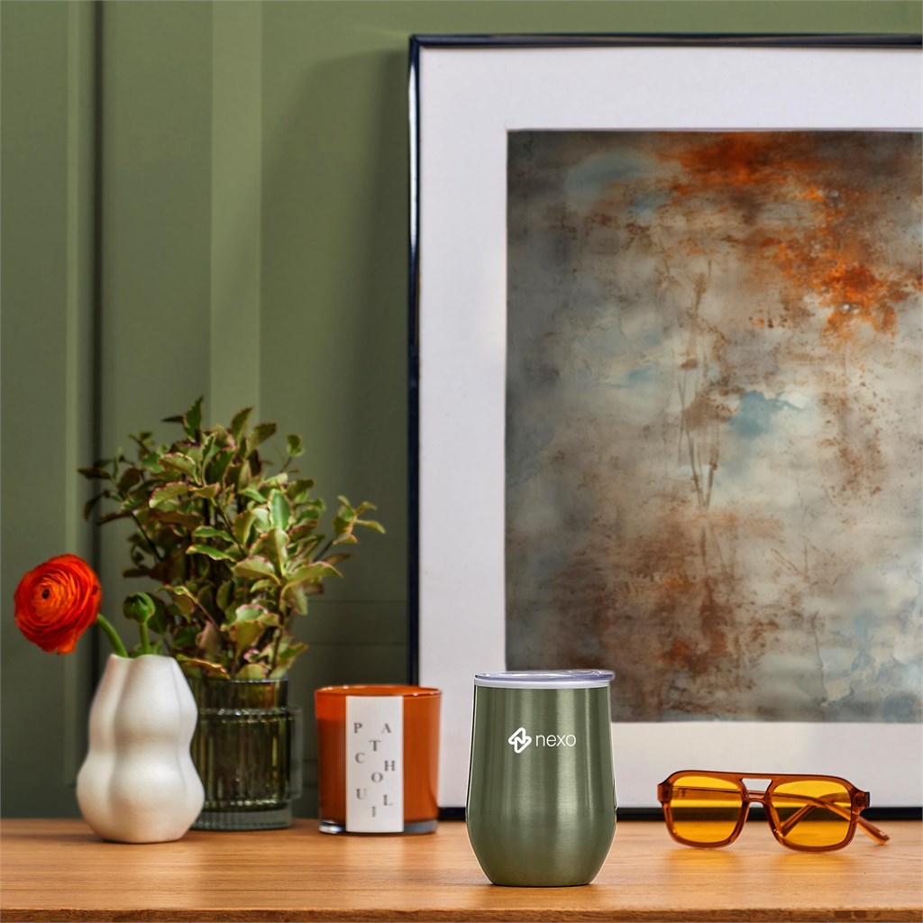 This classic design BPA-free, double-wall cup can be used as an on-the-go coffee cup, or as a tumbler for wine or other beverages when you're outdoors. It has a stainless steel outer wall and a polypropylene inner wall that keeps drinks hot or cold for longer, and a secure push-on lid. If you’re looking for something a little different from your standard corporate and promotional colours, then consider this refreshing double-wall tumbler, which is offered in contemporary, fashionable colours with a striking finish.