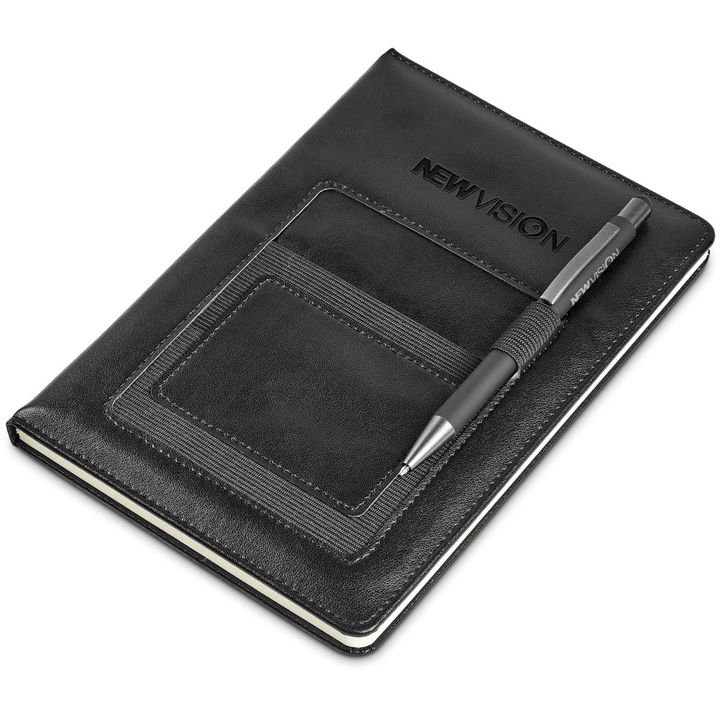 This contemporary classic notebook is paired with a soft-touch stylus pen, perfect for use with your mobile phone, which can be carried in the elasticated pouch.