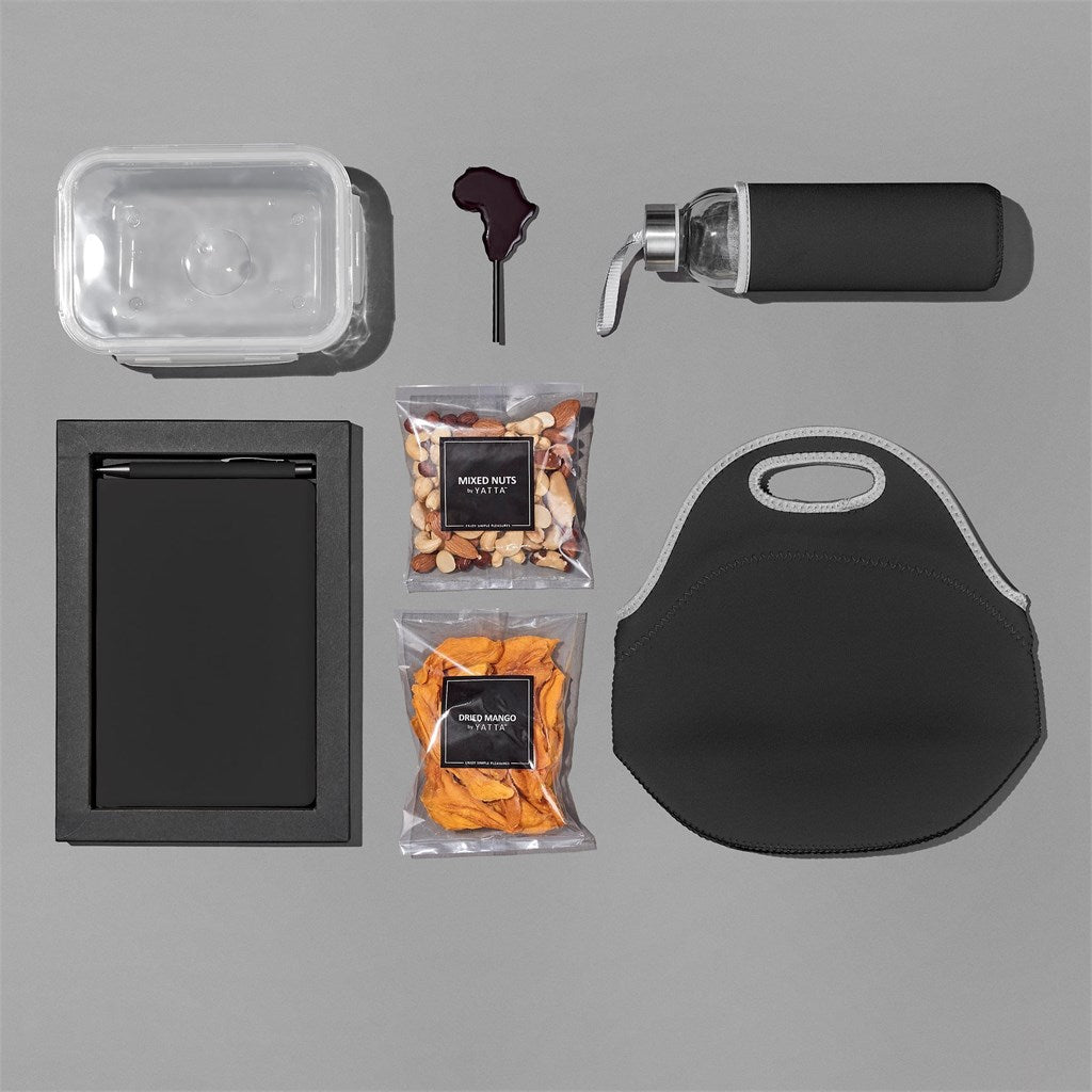 The Yatta range of hampers is expertly crafted to provide a delightful experience with a curated selection of premium items and edible treats. The edibles are elegantly presented in a Yatta drawstring bag, and this hamper is further encased in a premium grey gift box.