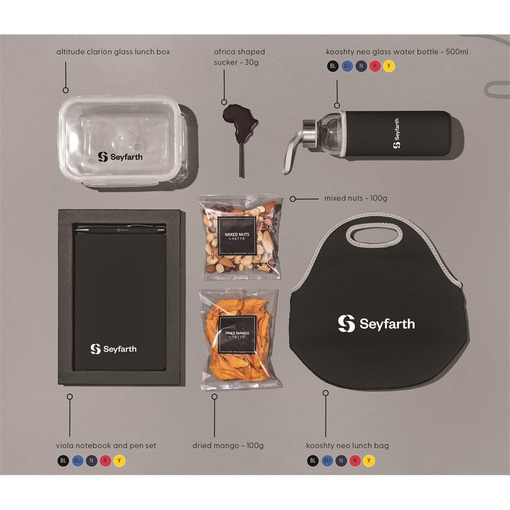 Brighten up any day with the Funky Fusion hamper—a vibrant blend of style and practicality. This energetic set is designed for those who appreciate both fun and function, making every outing a little more lively and delicious.