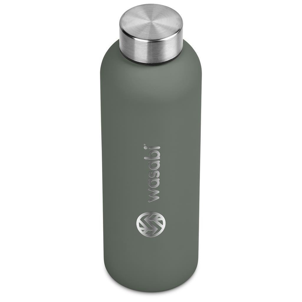 This single wall water bottle is made from durable, food grade stainless steel which won’t affect the taste of the liquid inside. The rubberised finish gives it an elegant, tactile look and feel. Branding of your logo by laser engraving reveals the shiny silver stainless steel beneath the rubberised coating, matching the bottle lid.