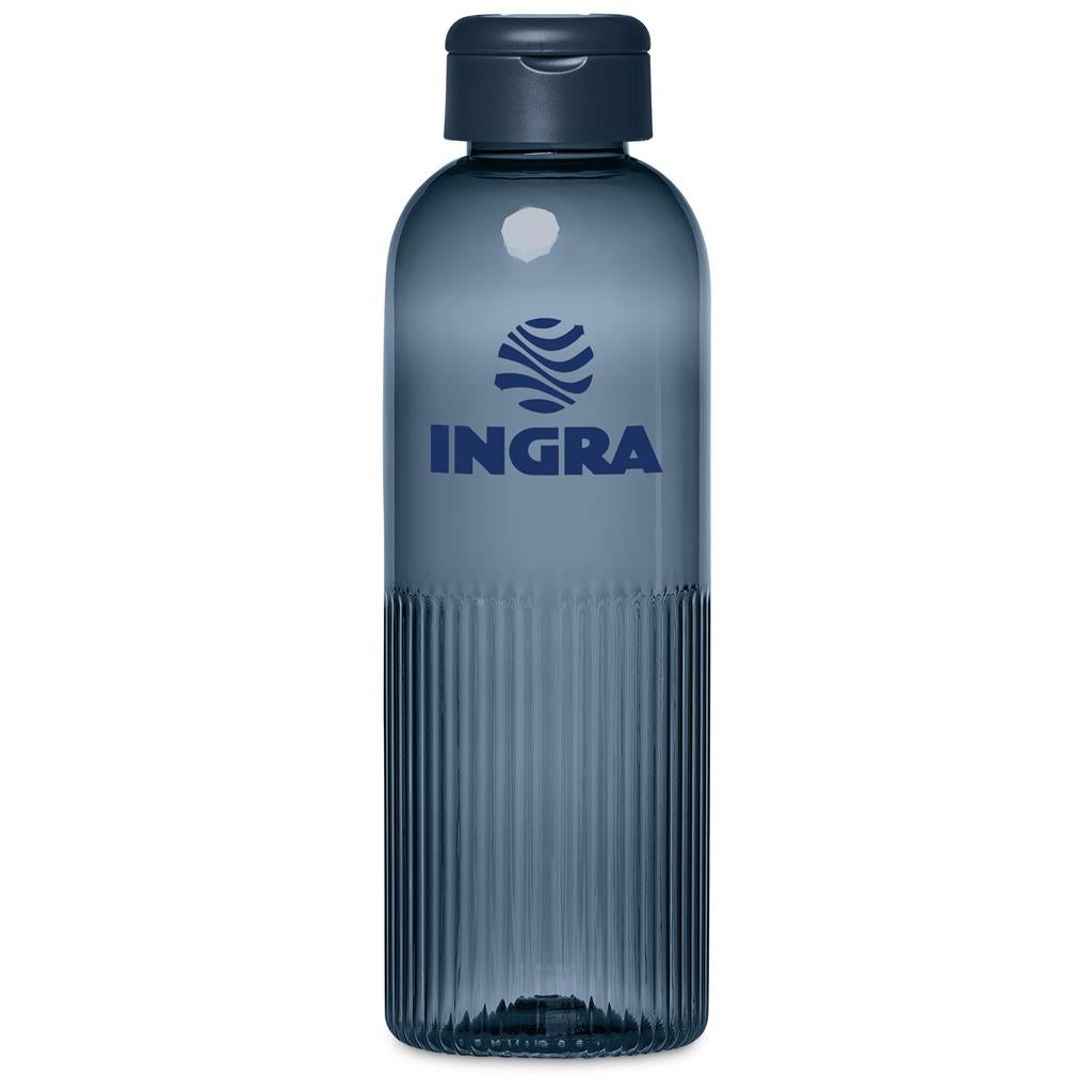The ribbed pattern of this fashionable BPA-free Recycled PET water bottle makes it feel both modern and timeless. The top half of the bottle is smooth, allowing for branding of your logo or message above the ribbed bottom half. It features a secure screw-on lid with a loop handle for easy carrying.