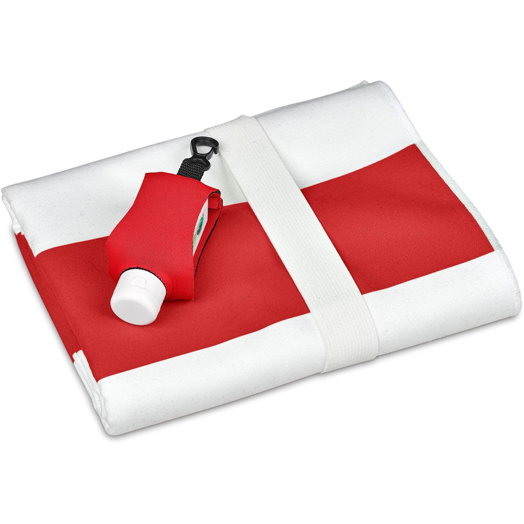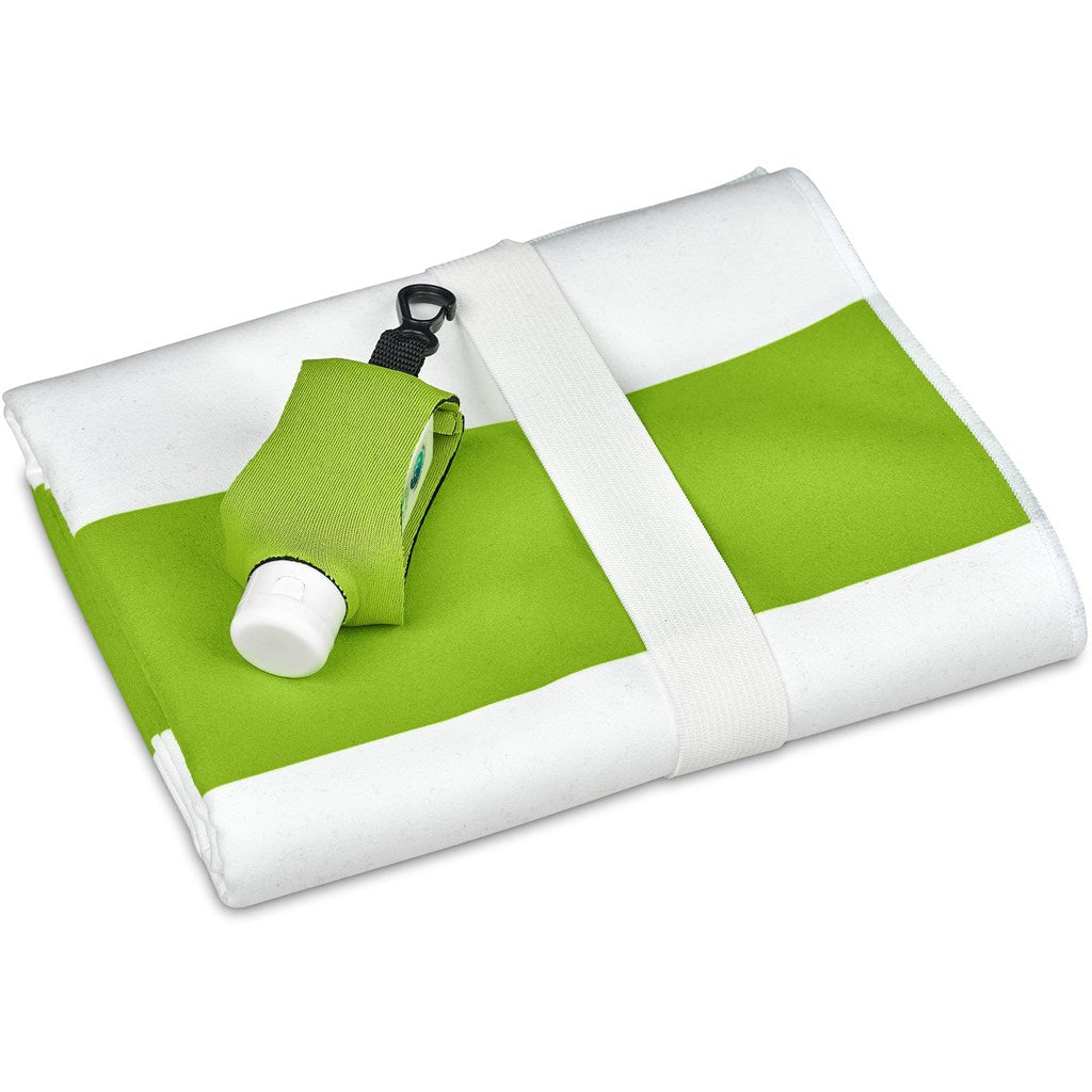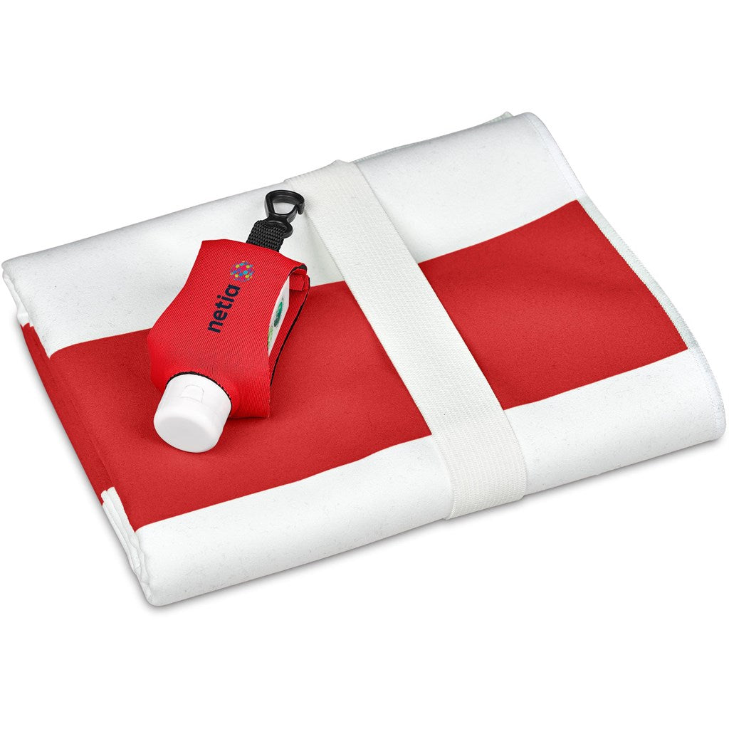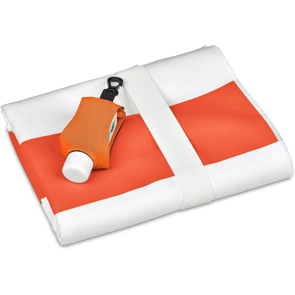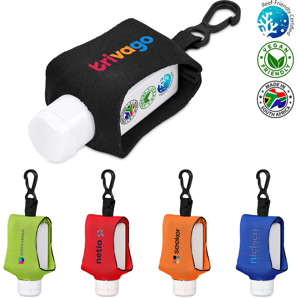 includes a neoprene pouch with a clip to hang on beach, school, work and leisure bags