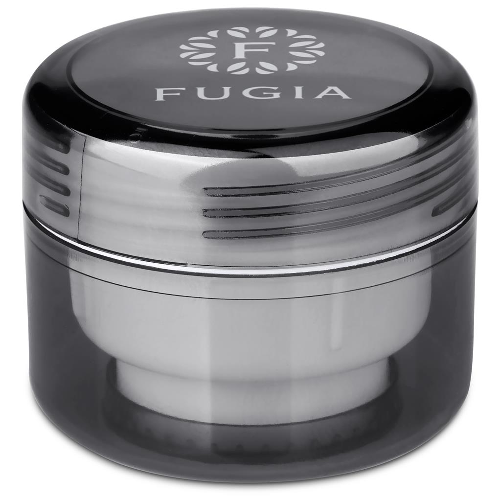 - round tub slips easily into your pocket or bag