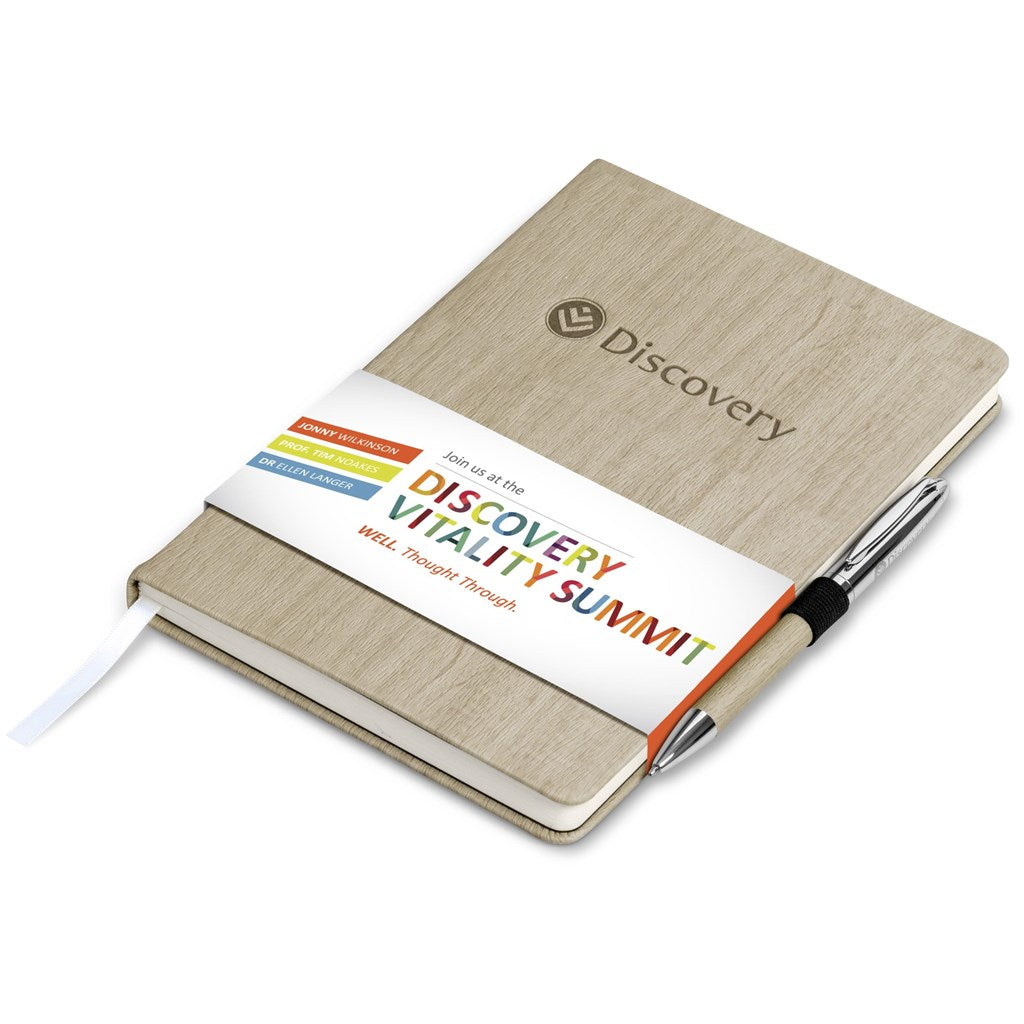 This A5 notebook has a hard cover with an attractive oak-like, textured grain pattern. Consider combining it with other items in the Oakridge collection.
