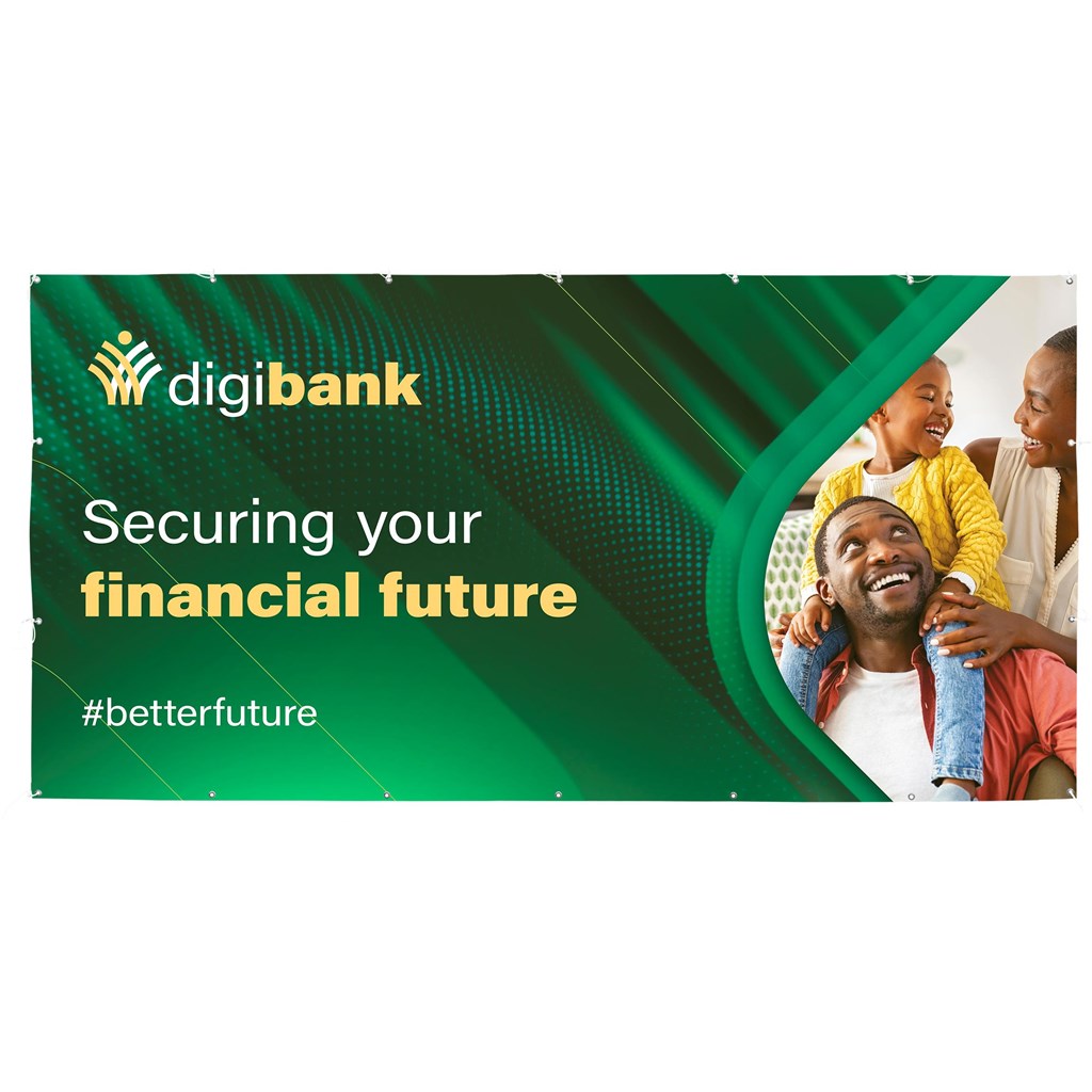 Full colour digital print onto 510g/m2 blockout PVC, finished with eyelets every 500mm and hem welded for strength.