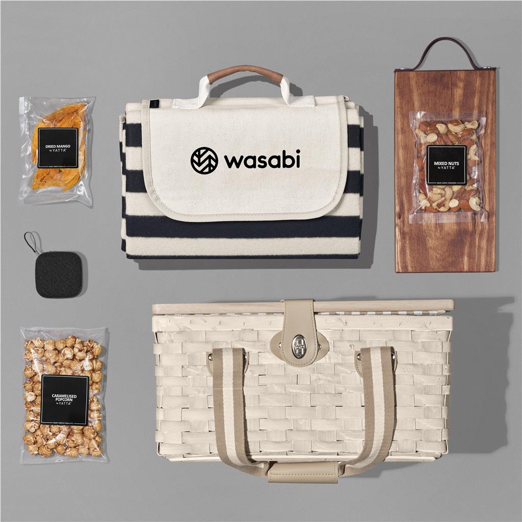 The Yatta range of hampers is expertly crafted to provide a delightful experience with a curated selection of premium items. Elegantly presented in a luxury two-person picnic basket.  This hamper is further encased in a large size durable Dark Grey RPET felt gift bag.